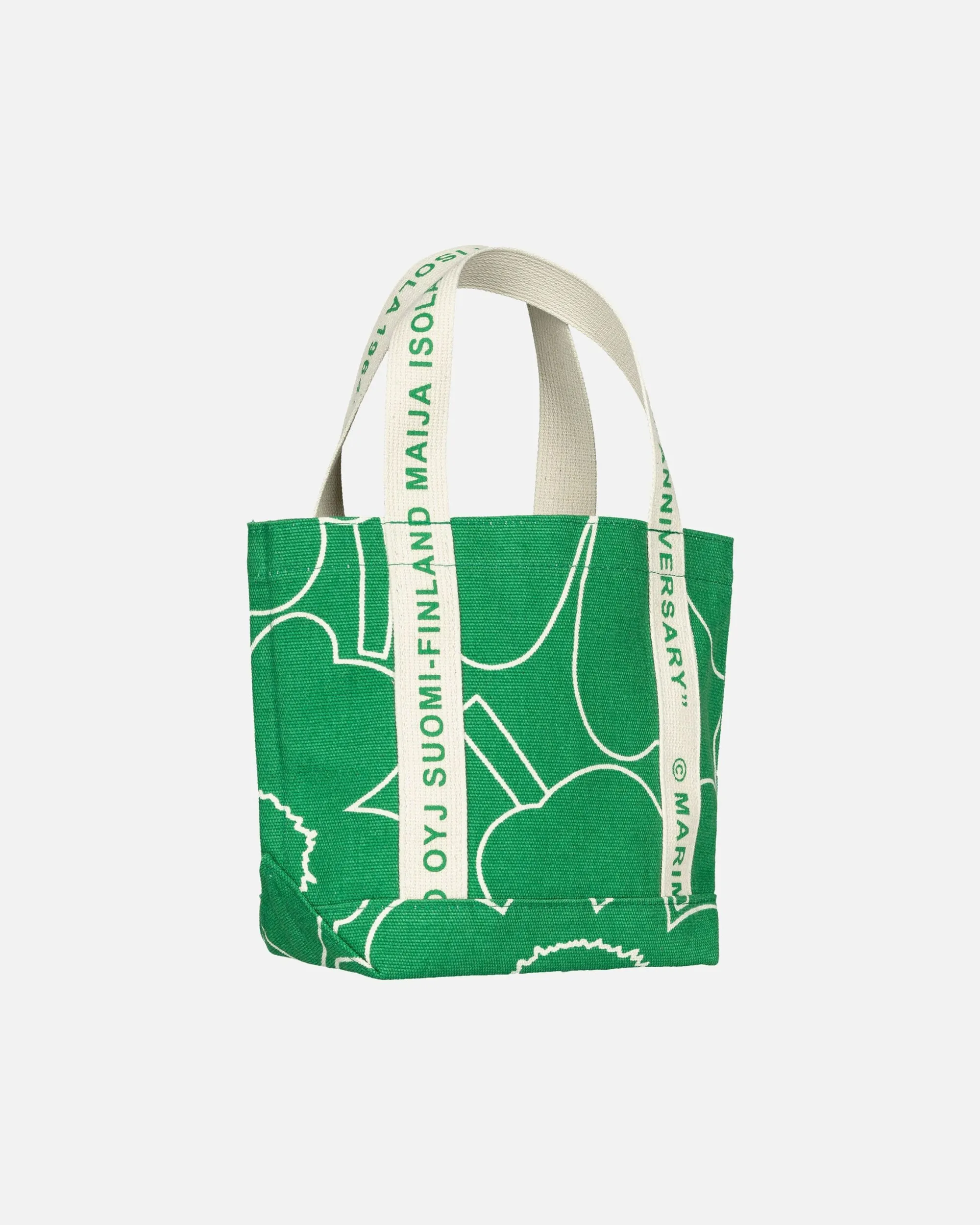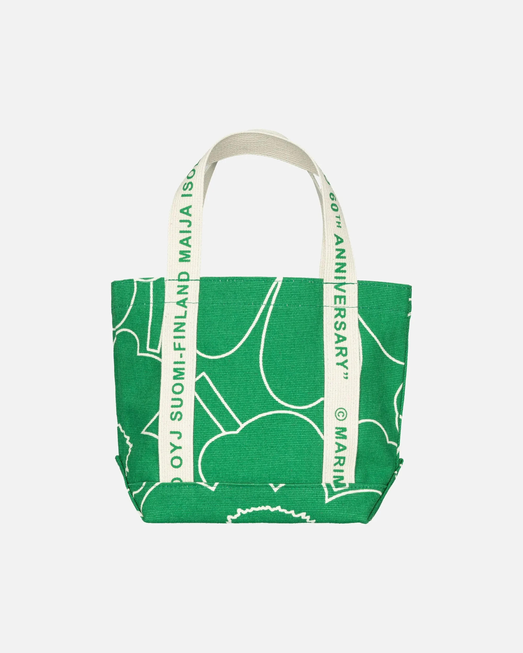 Carrier Mini -Laukku On Valmistettu Valkaisemattomasta, Piirto Unikko -Kuosisesta Puuvillapellavasta, Joka On Painettu Helsingissä. Marimekko Kioski -Tekstillä Painettu Puuvillanauha Kulkee Laukun Päällä Muodostaen Samalla Laukun Kantokahvat.