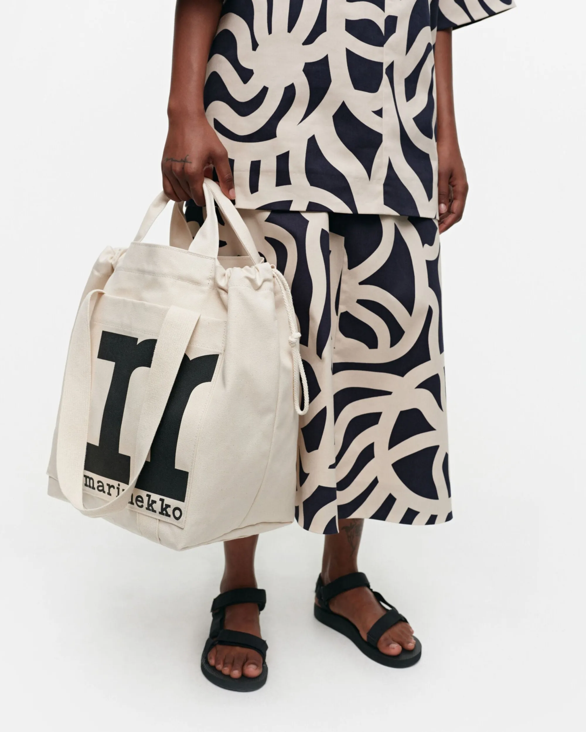 Mono City Tote -Laukku On Valmistettu Valkaisemattomasta Luomupuuvillasta. Laukussa On Kahdet Eri Pituiset Kantokahvat Ja Avoin Ulkotasku. Laukun Sivuja Kiertävät Kiristysnauhat, Joilla Voi Säätää Suuaukon Suuruutta Ja Muuttaa Laukun Muotoa.