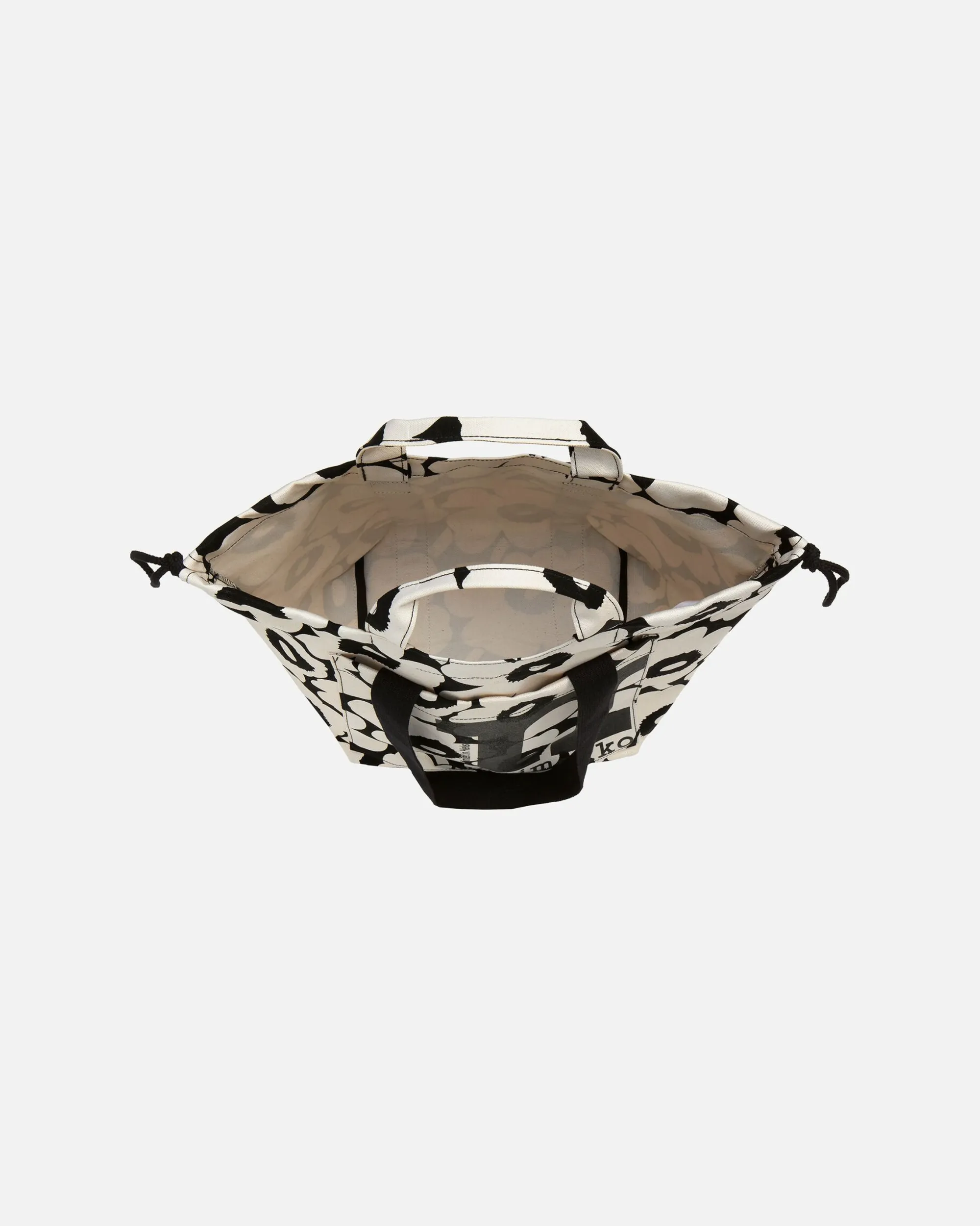 Unikko-Kuosinen Mono City Tote -Laukku On Valmistettu Valkaisemattomasta Luomupuuvillasta, Joka On Painettu Helsingissä. Laukussa On Kahdet Eri Pituiset Kantokahvat Ja Avoin Ulkotasku. Laukun Sivuja Kiertävät Kiristysnauhat, Joilla Voi Säätää Suuaukon Suuruutta Ja Muuttaa Laukun Muotoa.