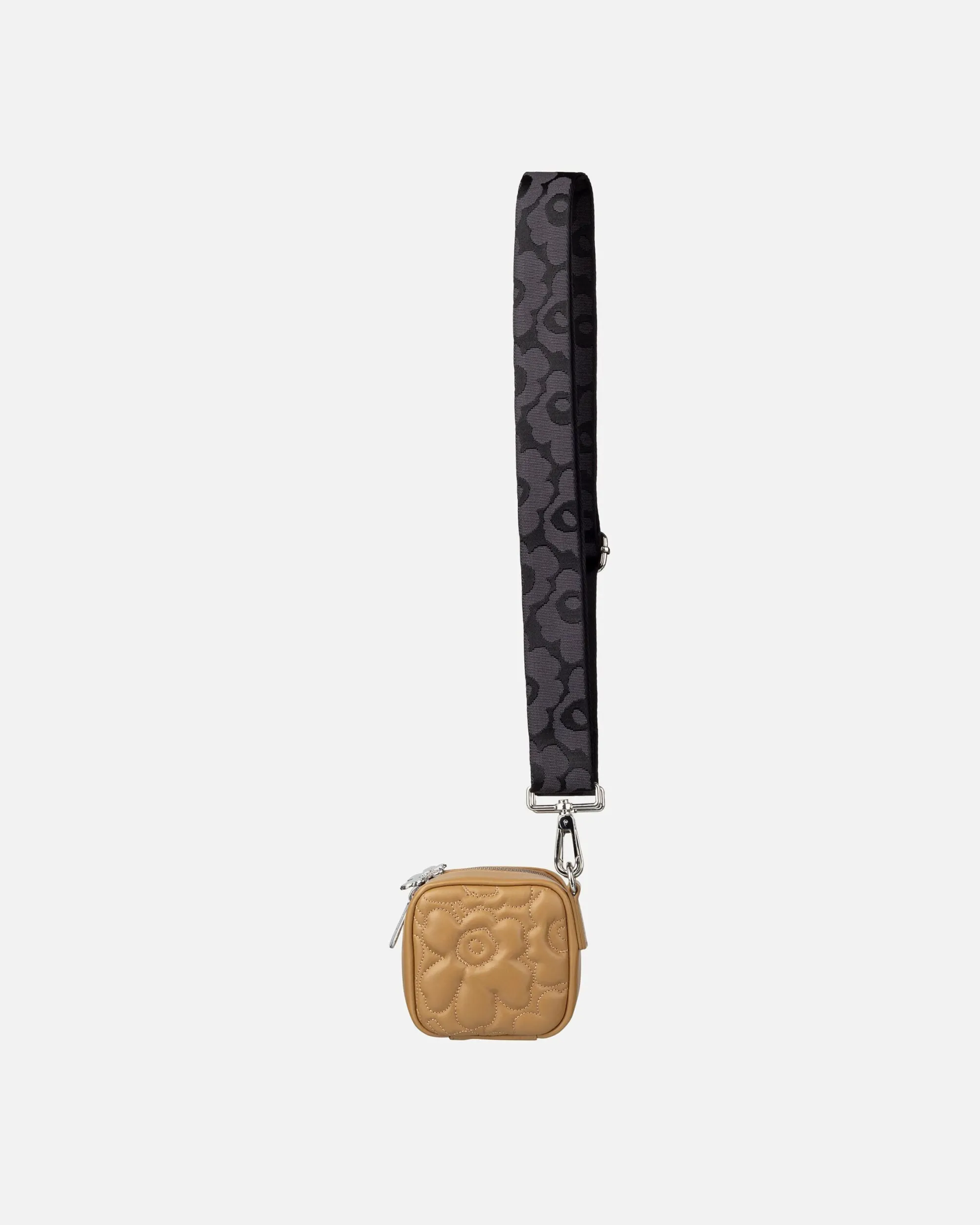 Nano Gratha -Olkalaukku On Valmistettu Pehmustetusta Nahasta, Johon On Tikattu Unikko-Kuosi. Pehmeä Nappanahka Patinoituu Kauniisti Käytössä. Monikäyttöinen, Kierrätetystä Polyamidista Valmistettu Olkahihna On Irrotettava Ja Säädettävä Ja Siinä On Jacquard-Kudottu Unikko-Kuosi. Pieni Laukku Sulkeutuu Vetoketjulla, Jossa On Yksi Unikko-Kukan Mallinen Vedin. Sisäpuoli On Vuoritettu.