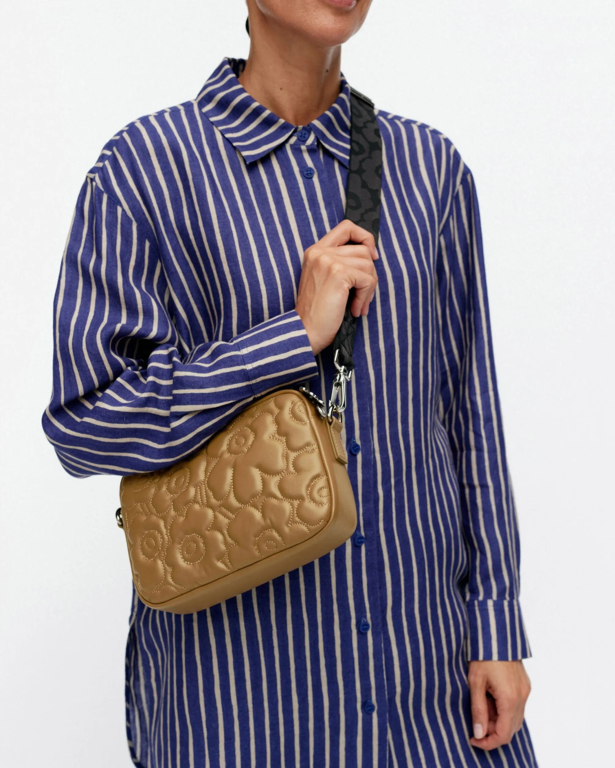 Soft Gratha -Olkalaukku On Valmistettu Pehmustetusta Nahasta, Johon On Tikattu Unikko-Kuosi. Pehmeä Nappanahka Patinoituu Kauniisti Käytössä. Kierrätetystä Polyamidista Valmistettu Olkahihna On Irrotettava Ja Säädettävä Ja Siinä On Jacquard-Kudottu Unikko-Kuosi. Laukku Sulkeutuu Vetoketjulla, Jossa On Yksi Unikko-Kukan Mallinen Vedin. Sisäpuoli On Vuoritettu Ja Siellä On Yksi Vetoketjutasku.