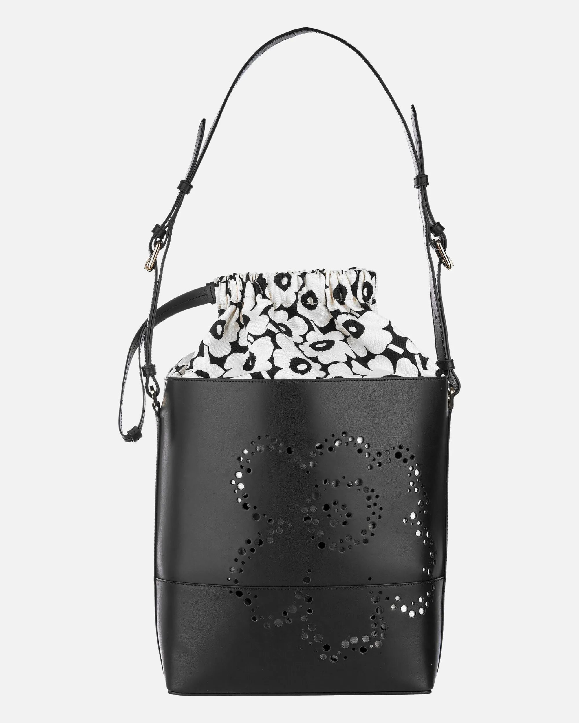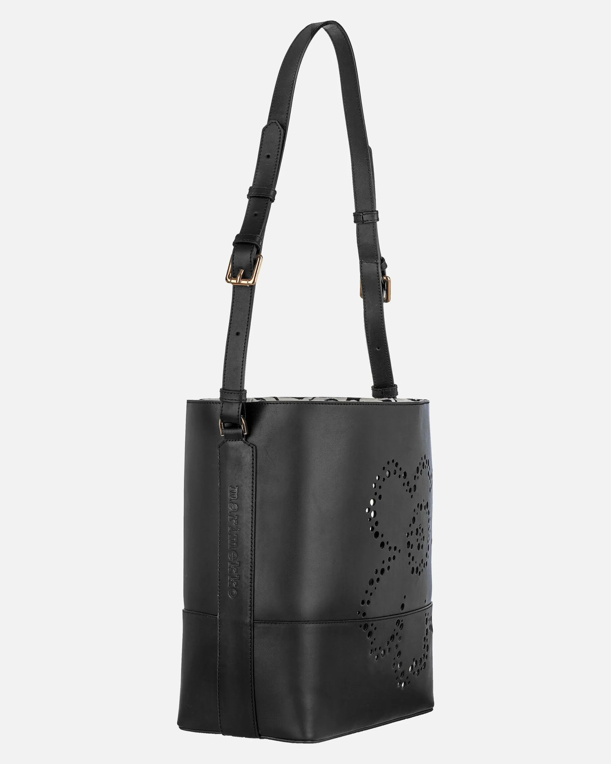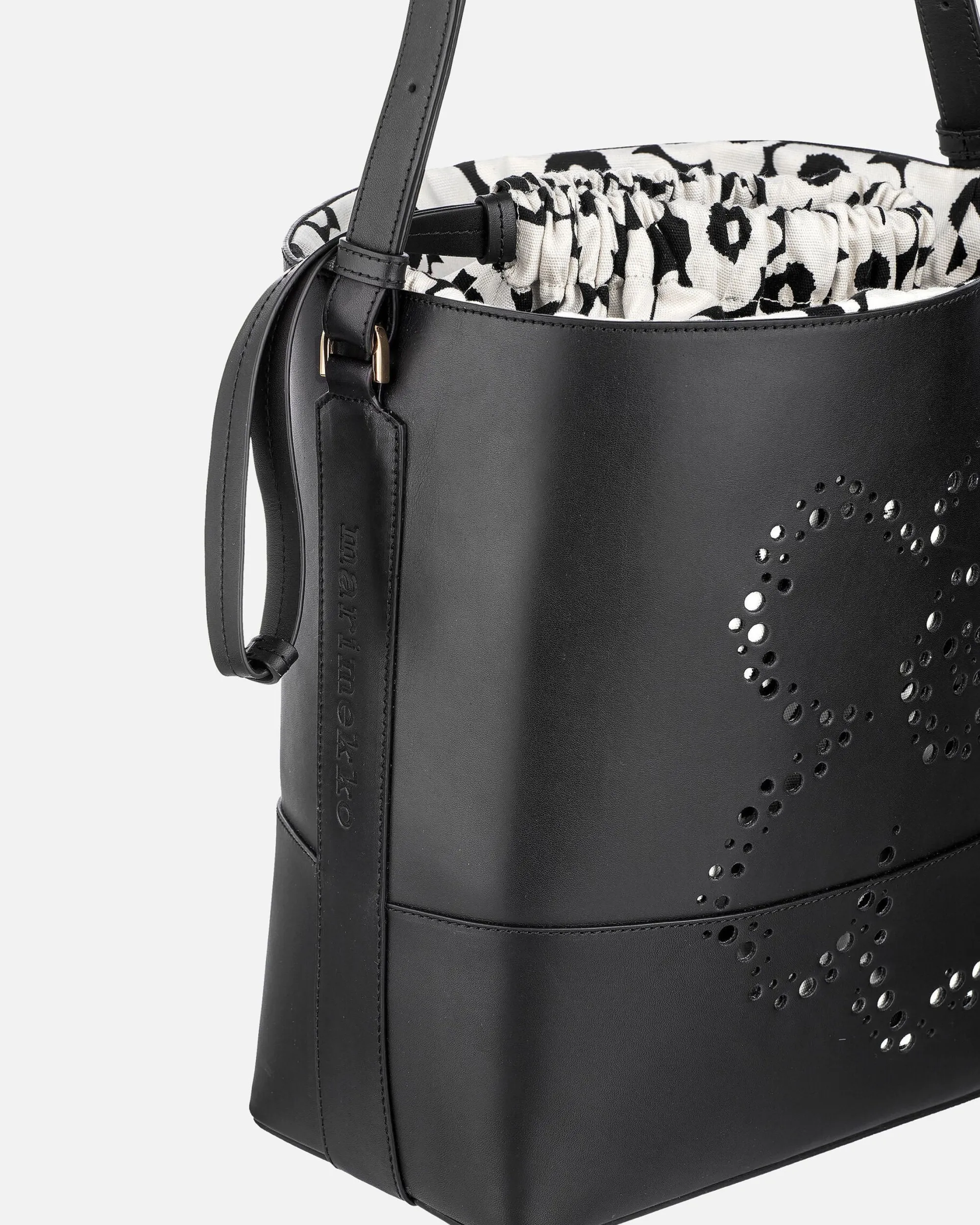 Imprint Tote Unikko -Laukku On Valmistettu Jäljitettävästä Skandinaavisesta Nahasta. Etupuolen Unikko-Kukka Muodostuu Pitsimäisesti Pienistä Rei’Istä. Laukussa On Säädettävä Olkahihna. Laukun Suuaukko Vedetään Kiinni Nahkahihnojen Avulla Ja Kiinnitetään Stopparilla. Laukussa On Yksi Sisätasku. Sisävuori On Valmistettu Unikko-Kuosisesta Puuvillasta. Marimekko-Logo On Kohokuvioitu Laukun Sivuihin Ja Pohjaan.
