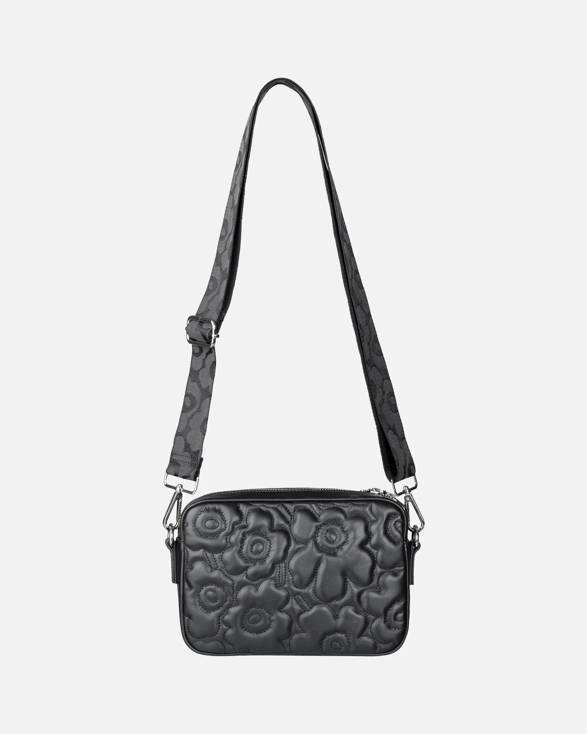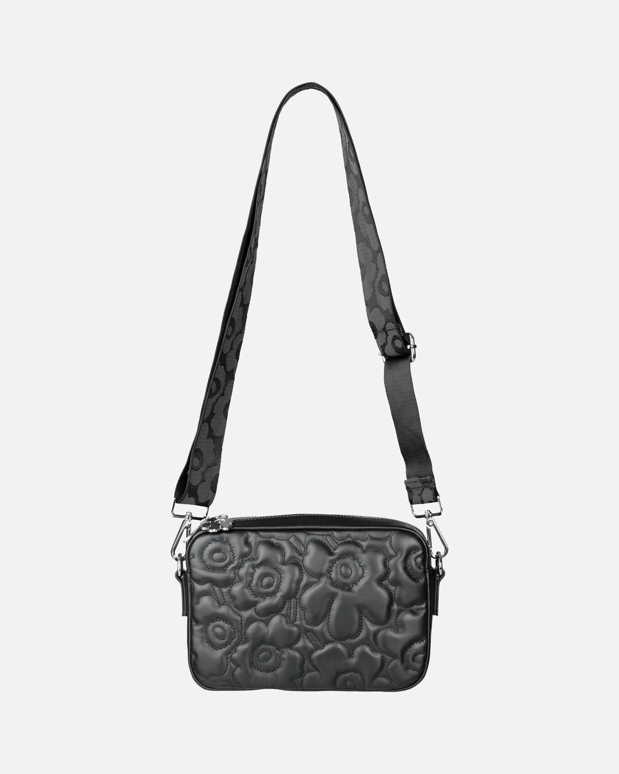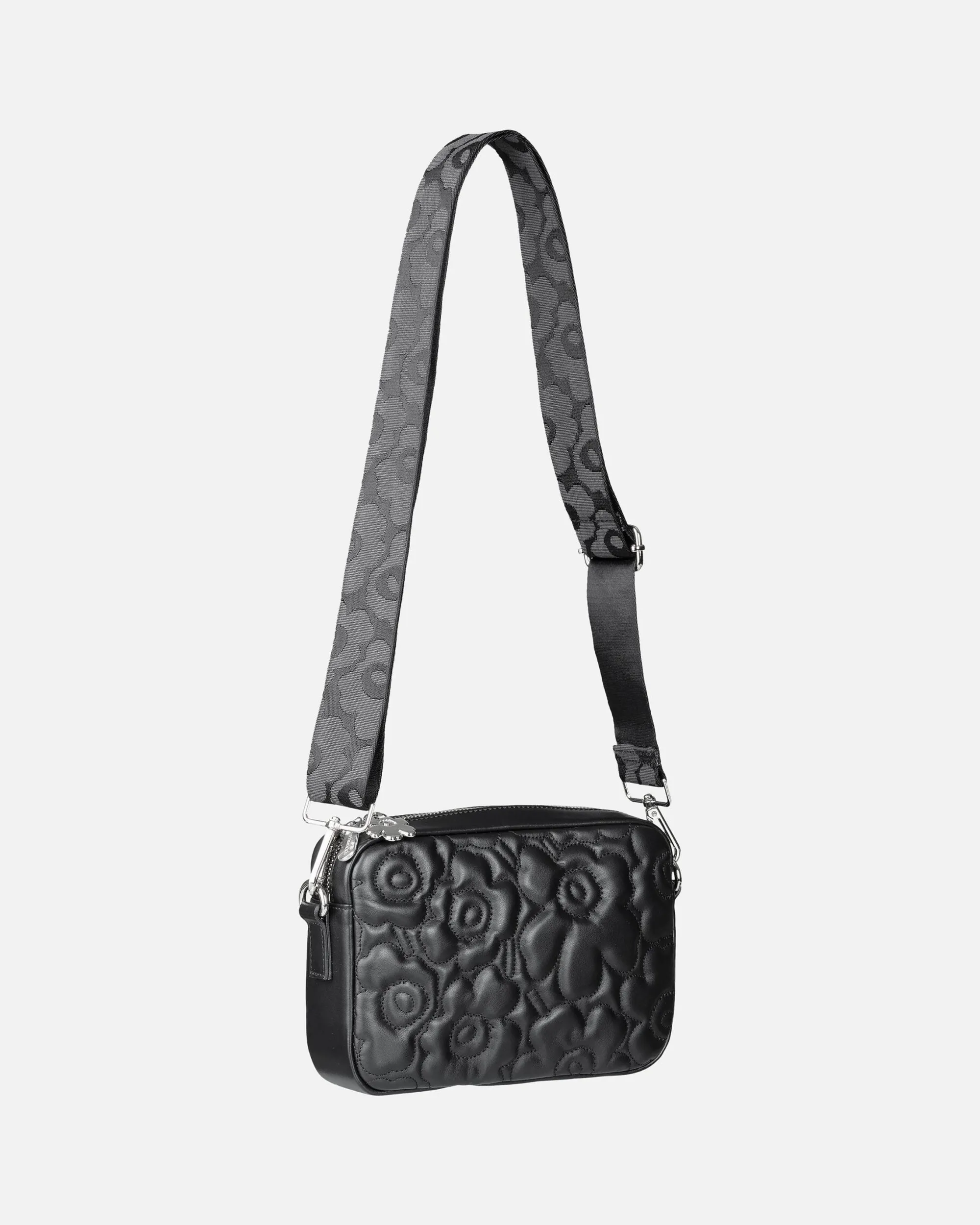 Soft Gratha -Olkalaukku On Valmistettu Pehmustetusta Nahasta, Johon On Tikattu Unikko-Kuosi. Pehmeä Nappanahka Patinoituu Kauniisti Käytössä. Kierrätetystä Polyamidista Valmistettu Olkahihna On Irrotettava Ja Säädettävä Ja Siinä On Jacquard-Kudottu Unikko-Kuosi. Laukku Sulkeutuu Vetoketjulla, Jossa On Yksi Unikko-Kukan Mallinen Vedin. Sisäpuoli On Vuoritettu Ja Siellä On Yksi Vetoketjutasku.