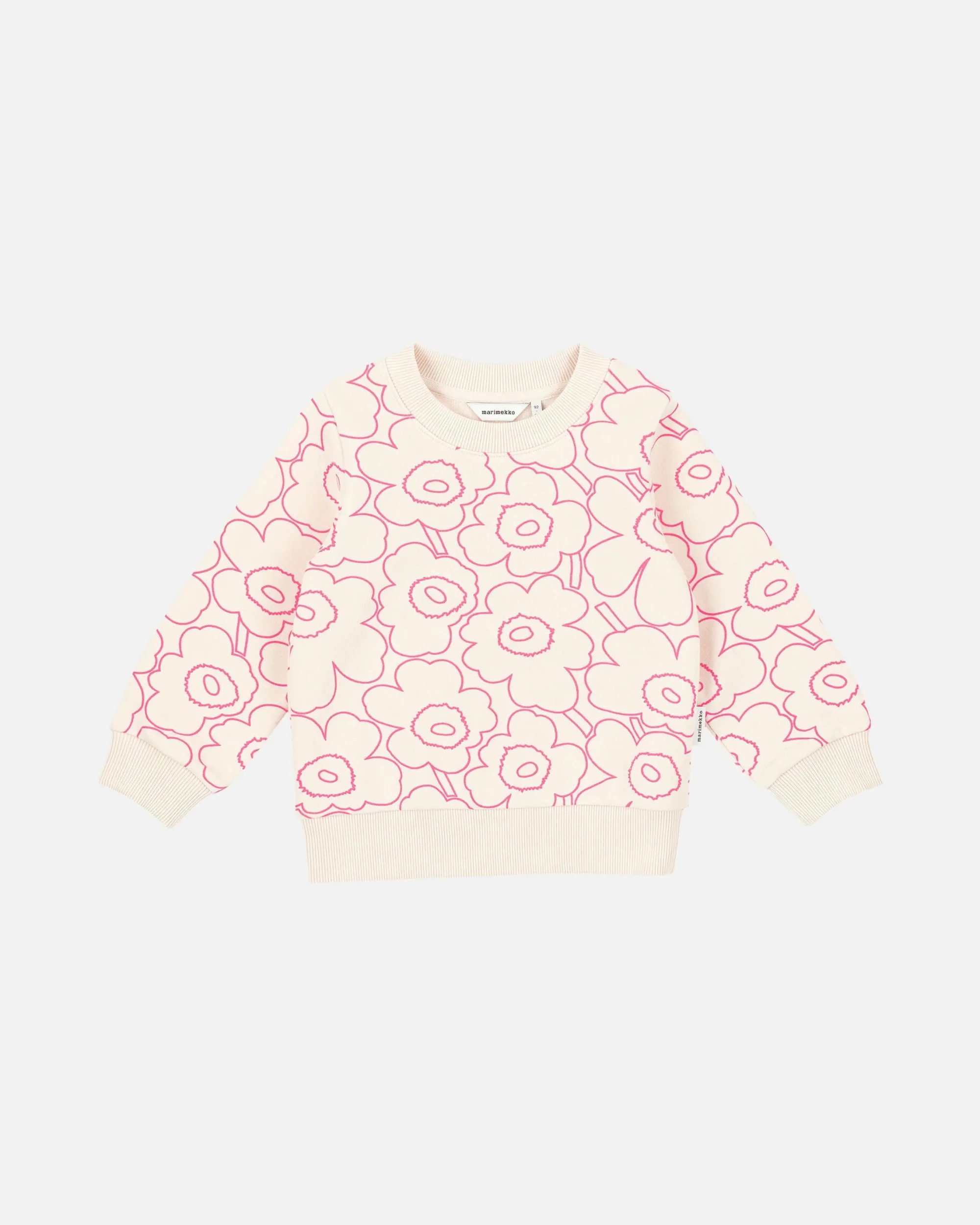 Puuvillatrikoosekoitteesta Valmistetussa Lasten Kuulas-Collegepaidassa On Rento Istuvuus Ja Suora Leikkaus Sekä Mini Piirto Unikko -Kuosi. Puserossa On Pyöreä Resoripääntie Ja Leveät Resorit Hihansuissa Sekä Helmassa.