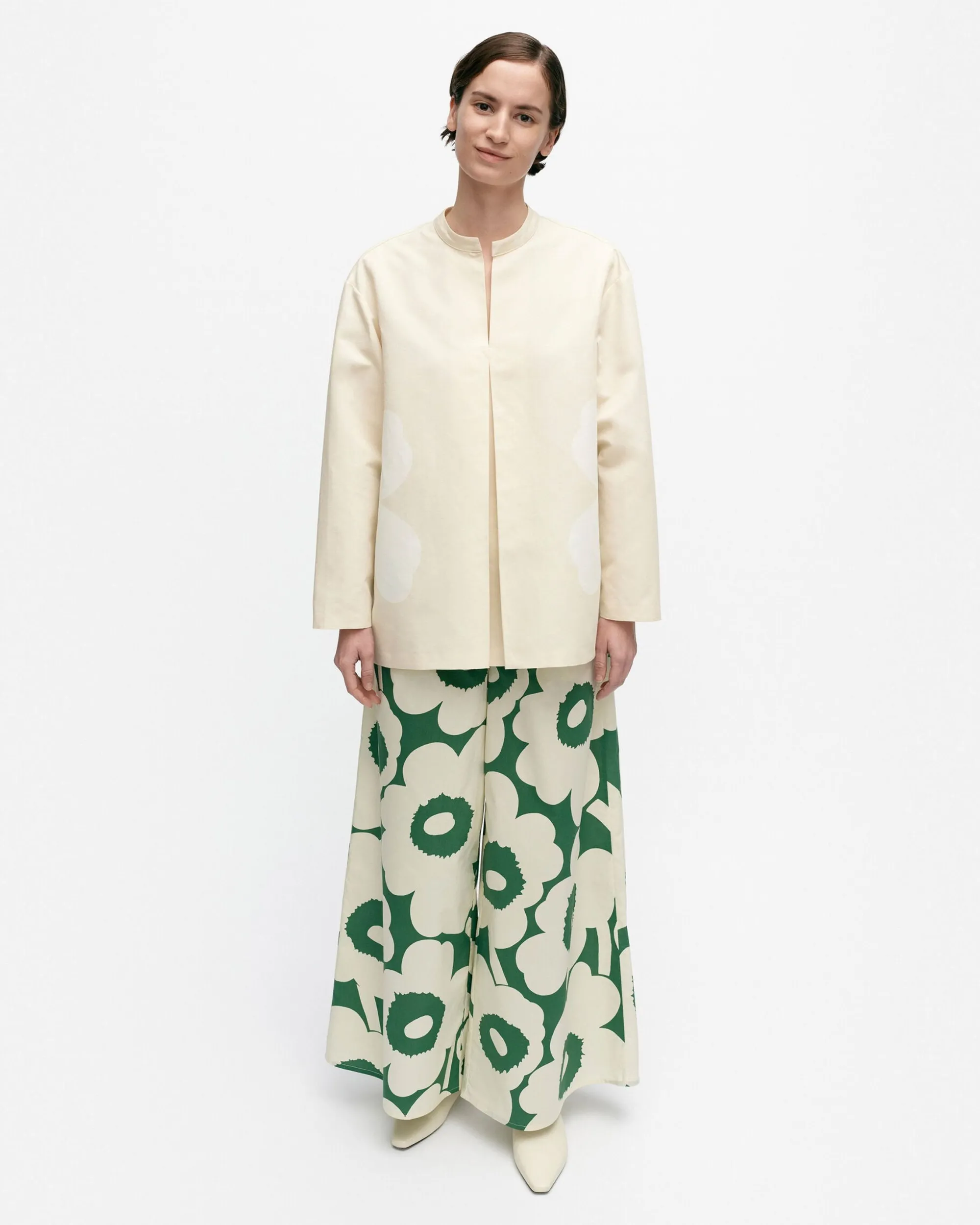 Kerran-Paita On Valmistettu Puuvillapellavasta Ja Siinä On Rento Istuvuus Ja Suora Leikkaus. Paidassa On Heijastus Unikko -Kuosi, Joka On Painettu Helsingissä. Paidassa On Pystykaulus, Jossa On Edessä Halkio. Pääntiehalkion Alta Aukeaa Pitkä Vastalaskos Helmaan. Takana On Selkäkaarroke Sekä Laskokset.