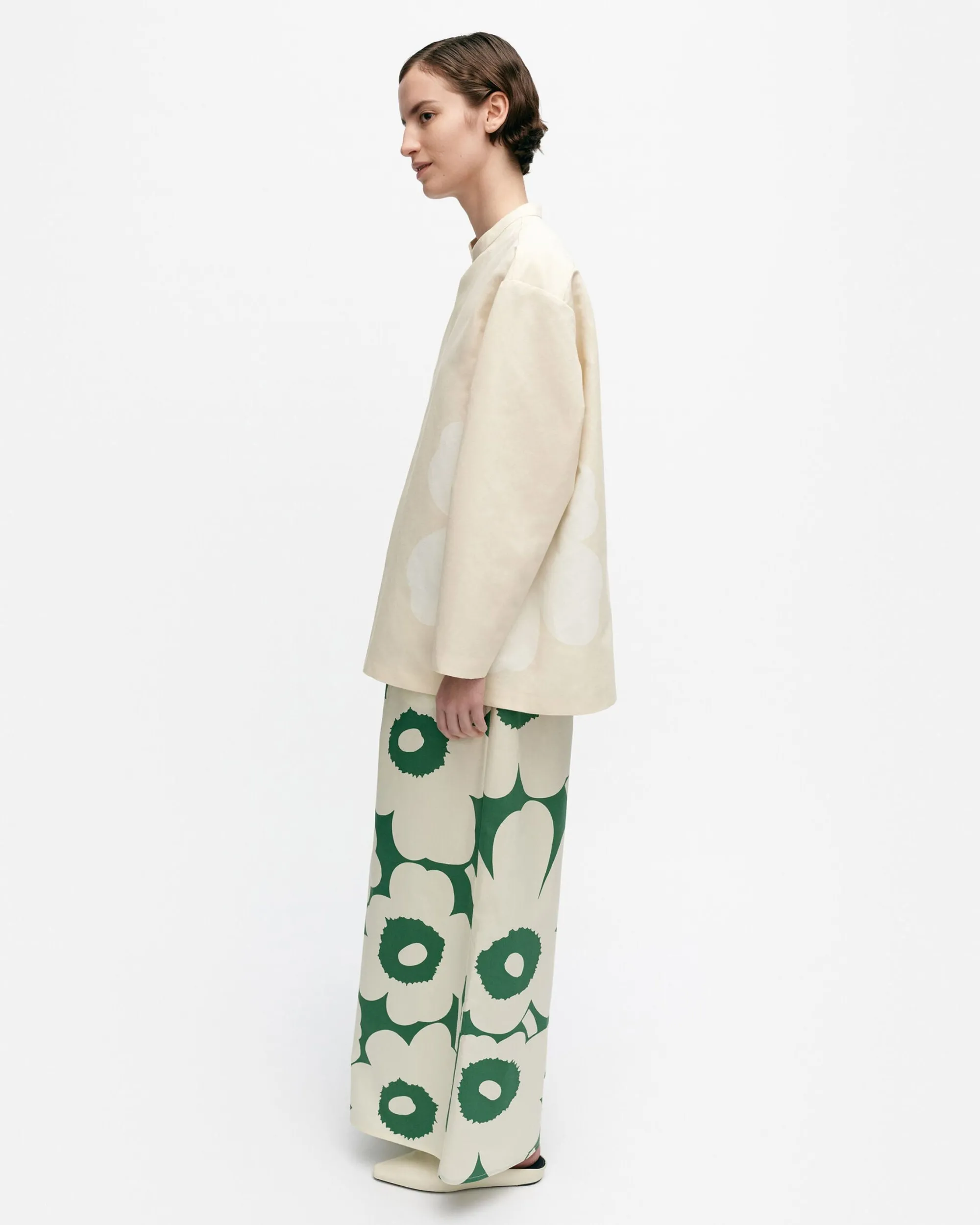 Maija Isola Loi Unikko-Kuvion, Kuviosuunnittelun Kansainvälisen Ikonin, Vuonna 1964. Marimekon Perustaja Armi Ratia Ajatteli, Ettei Kukkien Todellista Olemusta Ole Mahdollista Vangita Kuvioon. Tämän Vuoksi Marimekon Mallistoihin Ei Aiemmin Kukkia Kuulunut. Maija Isola Suunnittelikin Unikko-Kuvion Pikemminkin Abstraktiksi Tulkinnaksi Kuin Fotorealistiseksi Toisinnoksi Kukkateemasta. Tänä Päivänä Unikko On Vahva Ilon Ja Luovuuden Symboli Sekä Tärkeä Osa Marimekon Designidentiteettiä.Koko & Istuvuus