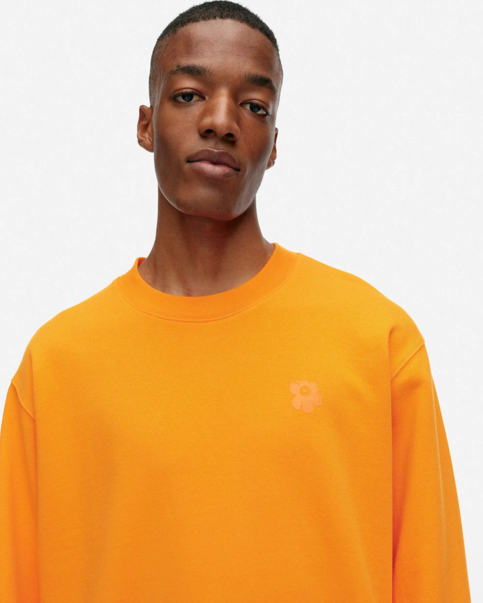 Luomupuuvillacollegesta Valmistetussa Leiot-Paidassa On Rento Istuvuus Ja Etupuolella Pieni Painettu Unikko-Kukka. Collegepaidassa On Resorikantilla Huoliteltu Pyöreä Pääntie Ja Hihansuissa Sekä Helmassa On Leveät Resorit.