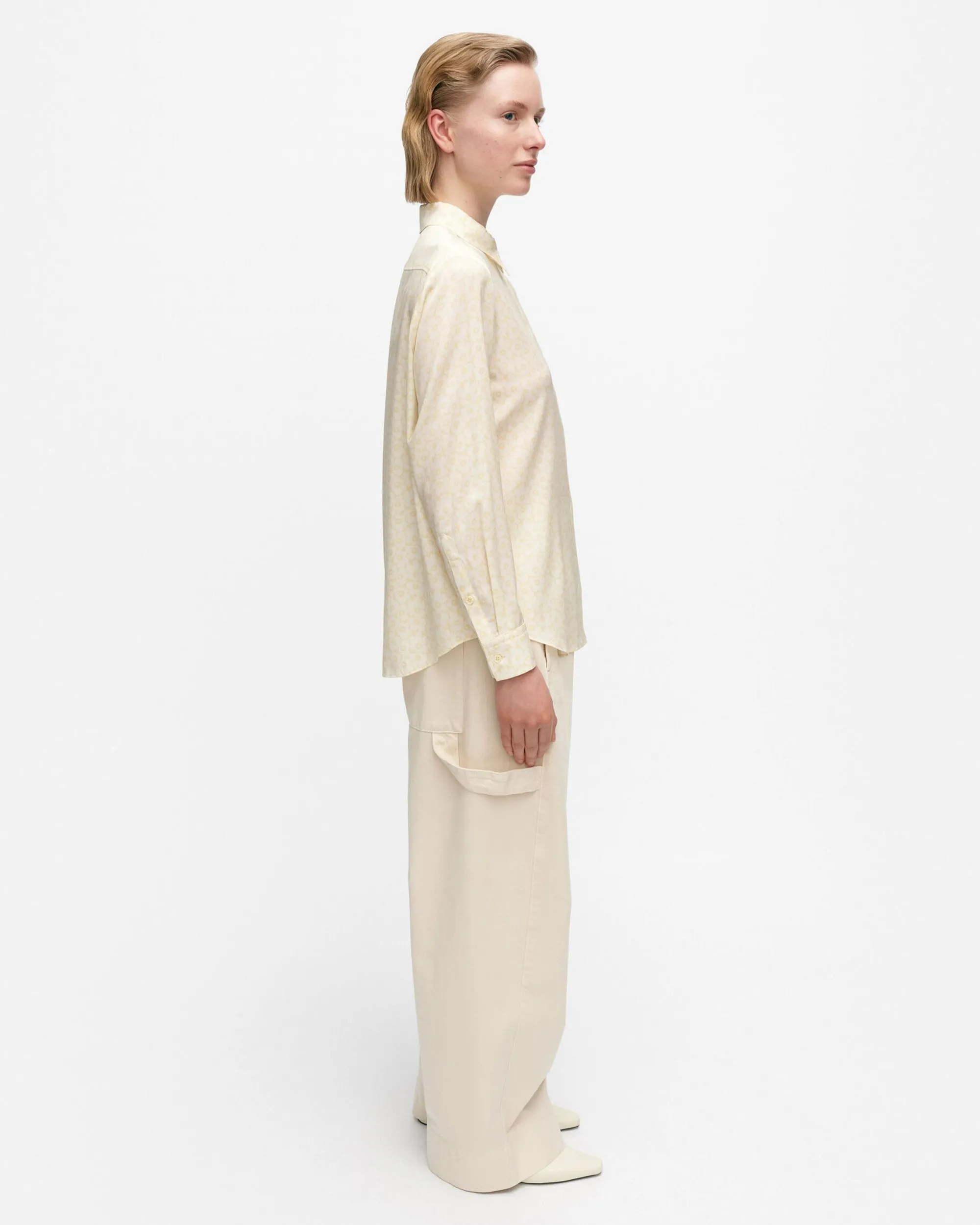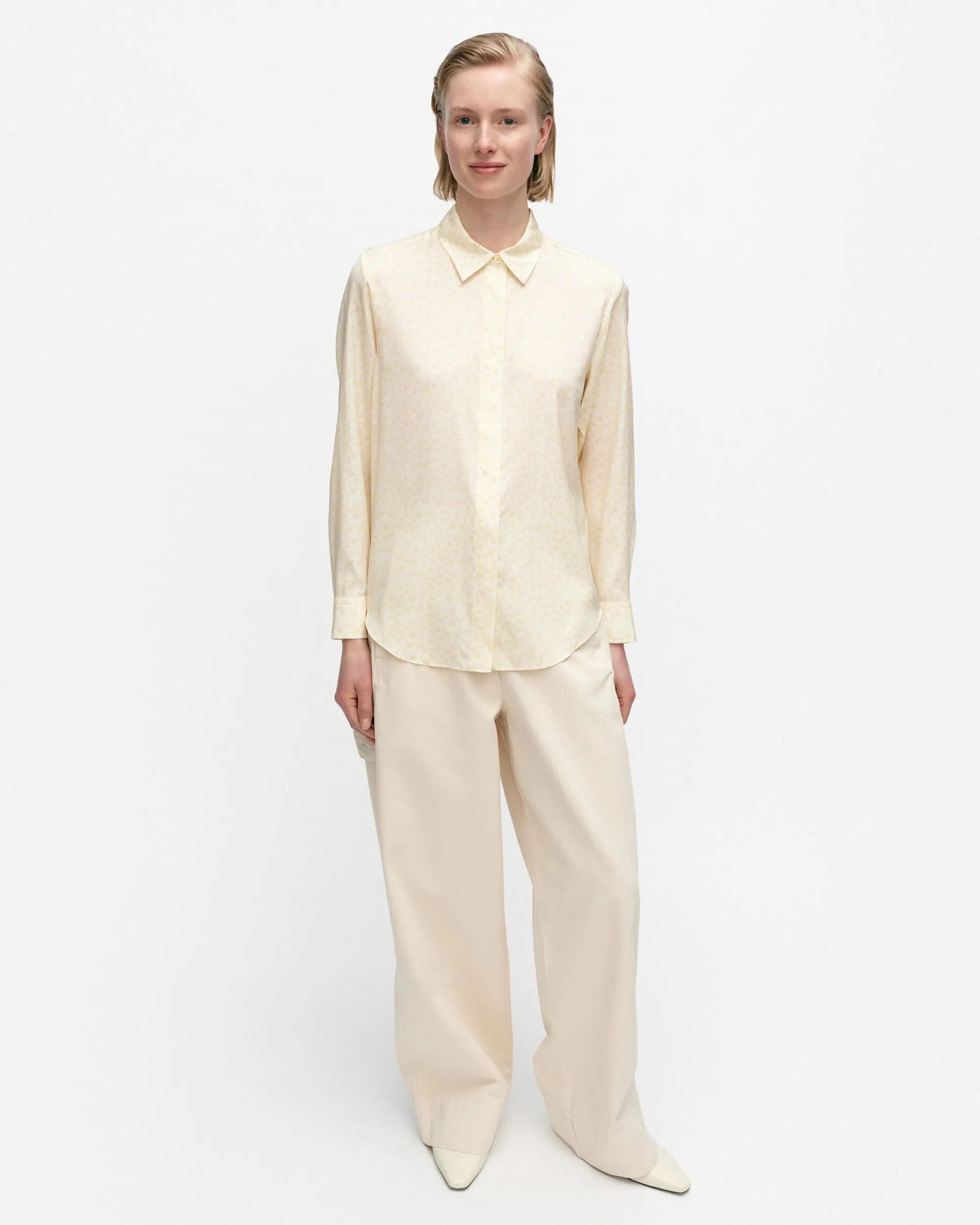 Maija-Silkkikauluspaidassa On Niukka Istuvuus, Suora Leikkaus Ja Pikkuinen Unikko-Kuosi. Tuotteessa On 5 % Elastaania. Kauluspaidassa On Piilonappisuljenta Ja Takana Selkäkaarroke Sekä Laskokset. Hihansuissa On Halkiot Ja Napitettavat Mansetit Ja Helmassa On Pyöristetty Leikkaus Sekä Sivuhalkiot.