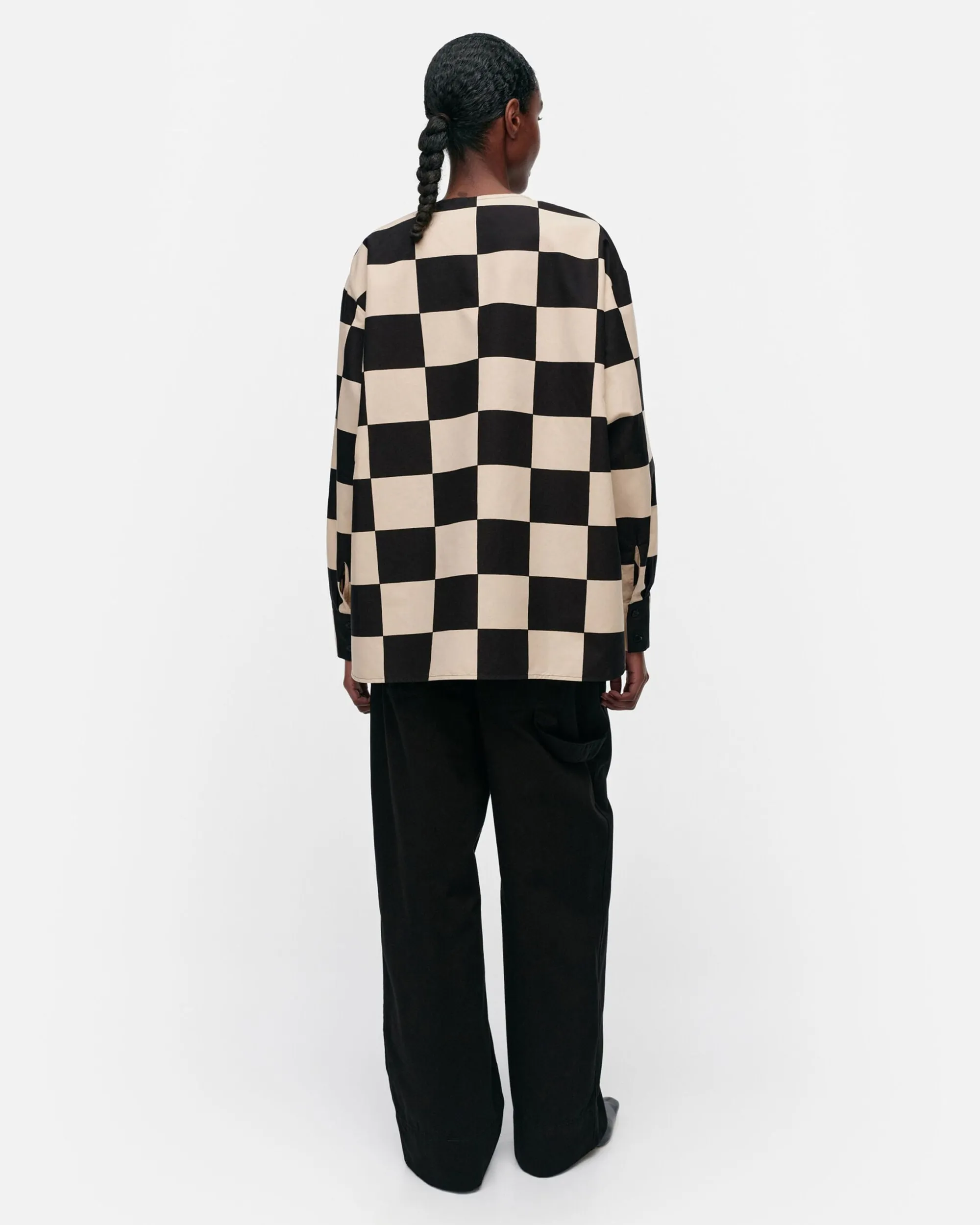 Reuna-Tunika On Valmistettu Puuvillapellavasta Ja Siinä On Rento Istuvuus, Suora Leikkaus Sekä Kukko Ja Kana -Kuosi, Joka On Painettu Helsingissä. Tunikassa On Pyöreä Pääntie, Piilovetoketju Vasemmalla Olalla Ja Helmassa Pyöristetty Leikkaus. Hihansuissa On Halkiot Ja Napitettavat Mansetit.