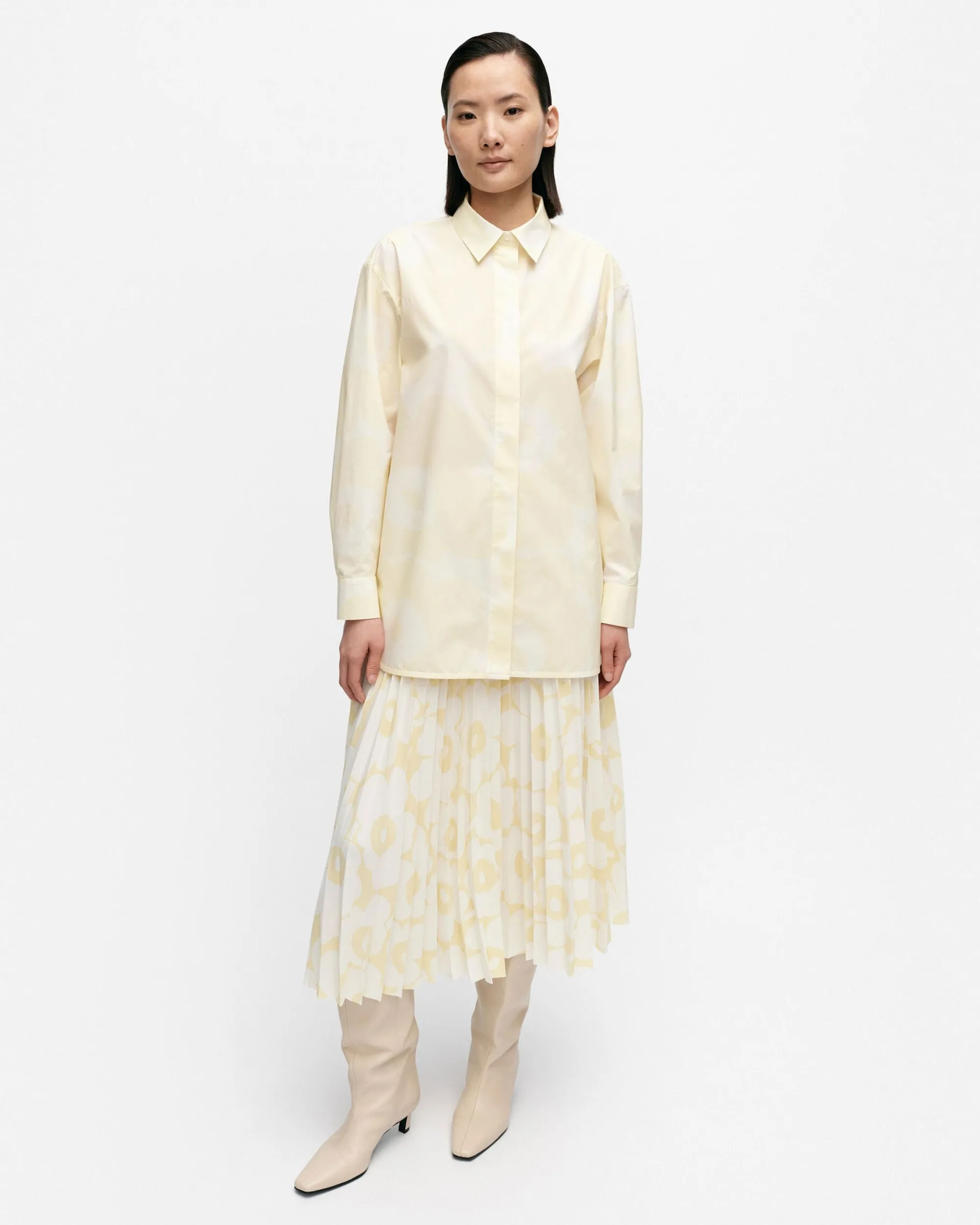 Ruoste-Kauluspaita On Valmistettu Luomupuuvillapopliinista Ja Siinä On Rento Istuvuus, Suora Leikkaus Ja Unikko -Kuosi. Paidassa On Piilonappisuljenta, Napitettavat Mansetit Hihansuissa Ja Pitkässä Helmassa Pyöristetty Leikkaus Sekä Sivuhalkiot.