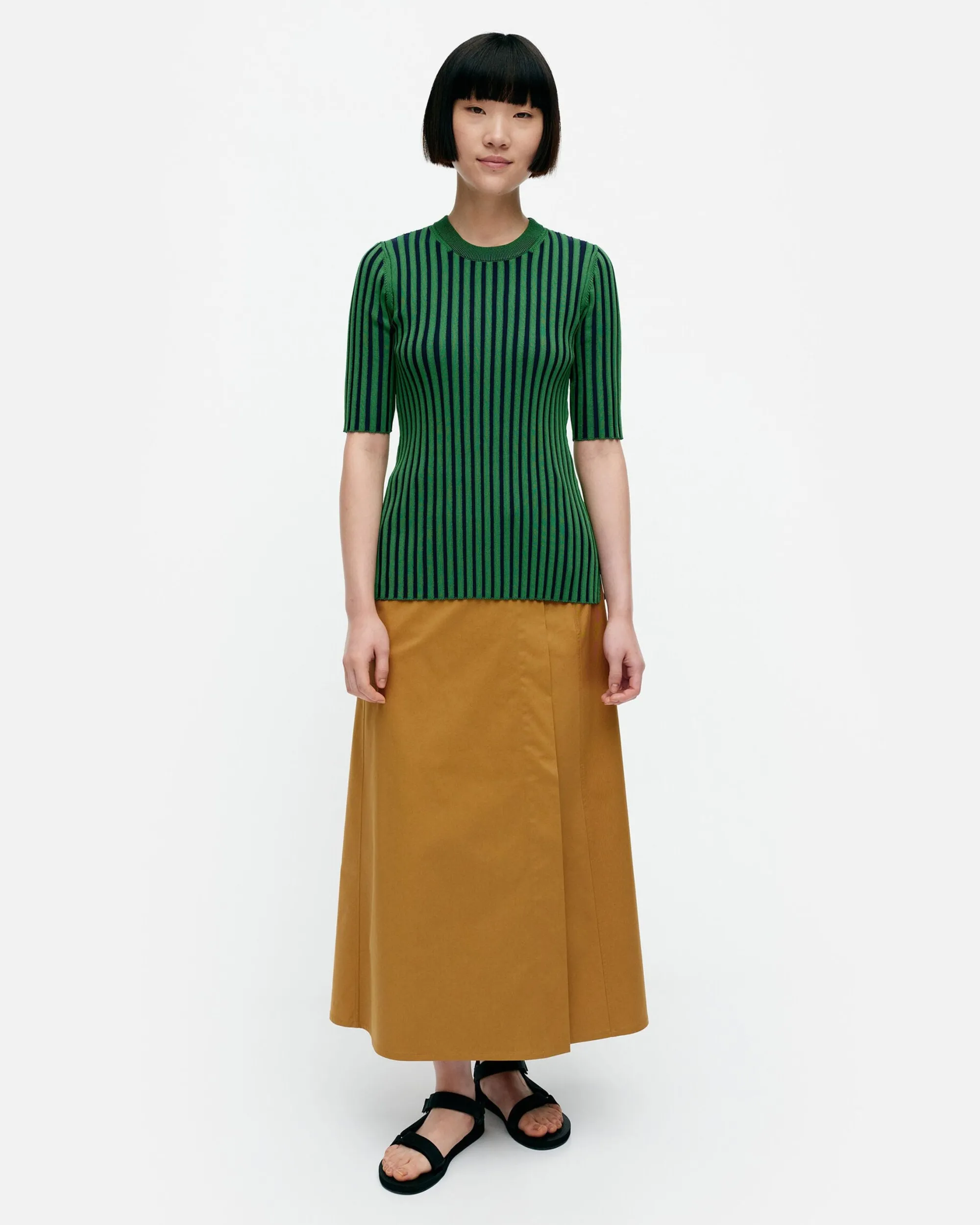 Raidat Ovat Aina Olleet Olennainen Osa Marimekon Kuviomaailmaa. Maija Isolan Suunnittelema Merirosvo Yhdistää Toisiinsa Kaksi Eriväristä Raitapalkkiparia.Koko & Istuvuus