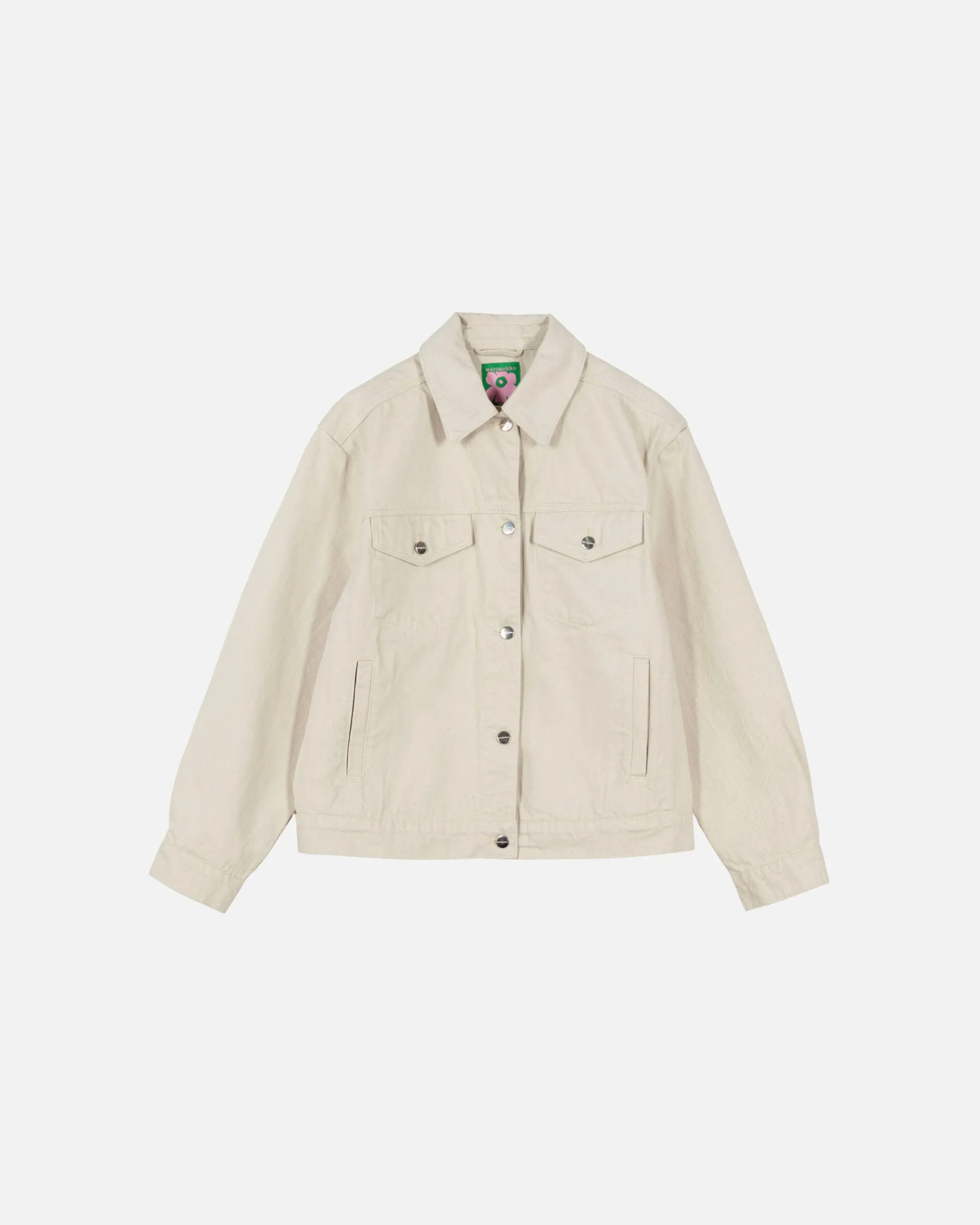 Ystävyys-Farkkutakki On Valmistettu Valkaisemattomasta Luomupuuvillatvillistä Ja Siinä On Väljä Istuvuus. Takissa On Farkkunappilista, Läpälliset Rintataskut Nappisuljennalla, Listataskut Sivuilla Ja Takana Helmakaitaleessa Säädettävät Tampit. Selkäpuolelle On Painettu Unikon 60-Vuotisjuhlavuosiprintti. Hihansuissa On Rannekkeet Ja Nappisuljenta.