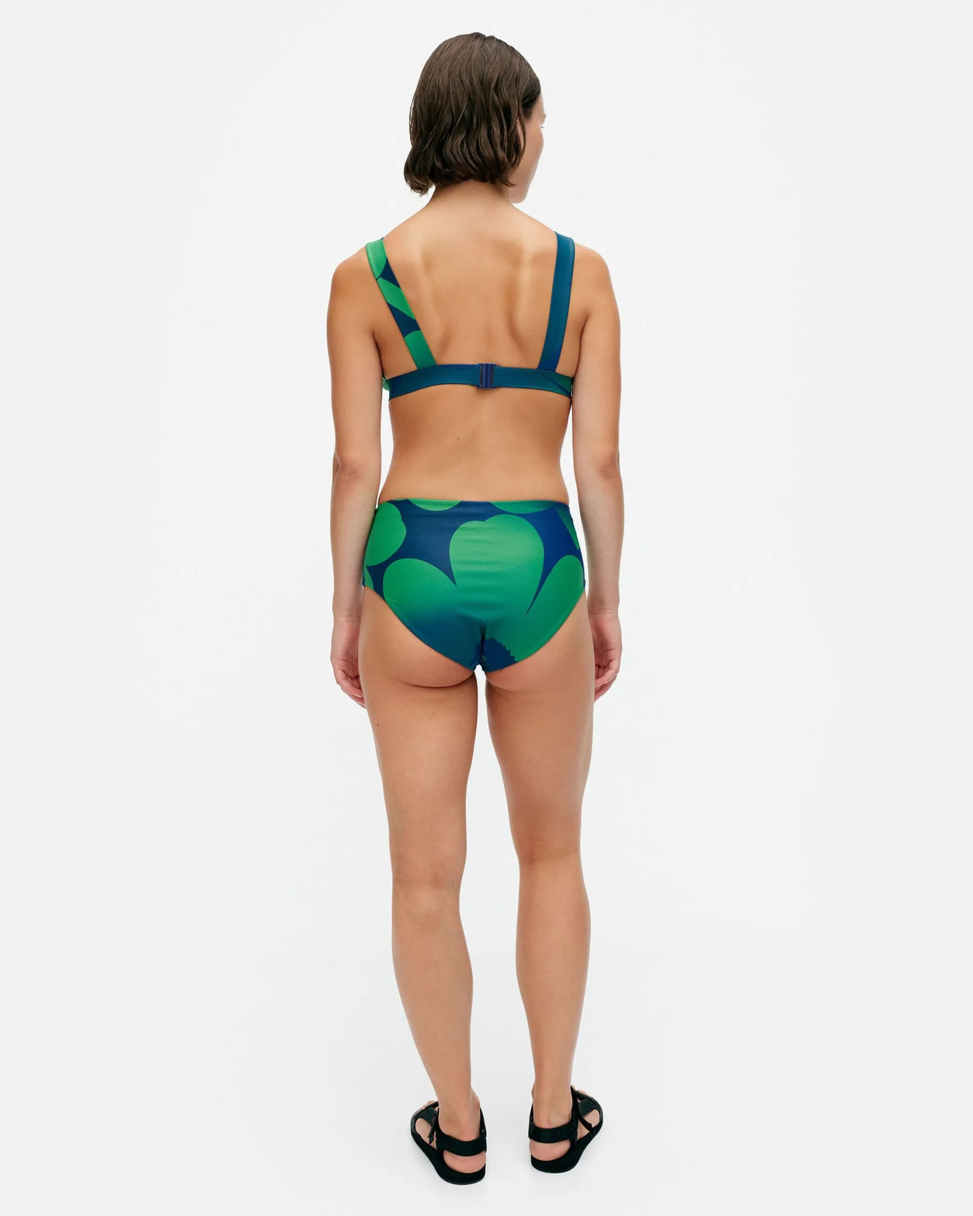 Mearta-Bikiniyläosassa On Liukuvärjätty Unikko-Kuosi, Jossa Värit Vaihtuvat Vihreästä Siniseen. Bikiniyläosa On Kokonaan Vuoritettu, Siinä On Rintaa Muotoilevat, Irrotettavat Kupit Ja Takana Solkikiinnitys. Materiaalilla On Upf 50+ -Luokitus.