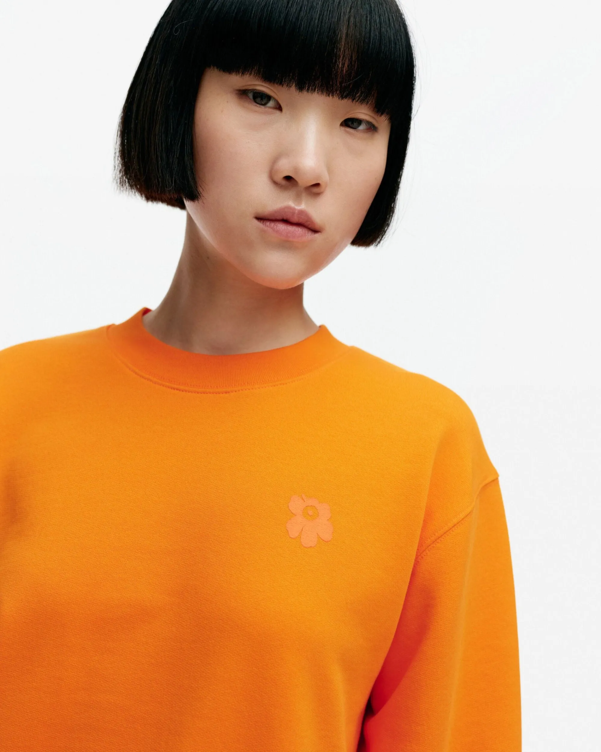 Luomupuuvillacollegesta Valmistetussa Leiot-Paidassa On Rento Istuvuus Ja Etupuolella Pieni Painettu Unikko-Kukka. Collegepaidassa On Resorikantilla Huoliteltu Pyöreä Pääntie Ja Hihansuissa Sekä Helmassa On Leveät Resorit.